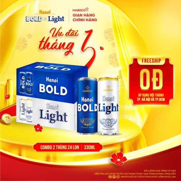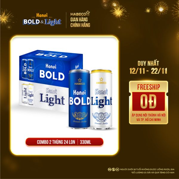 COMBO 2 THÙNG BIA HANOI BOLD&LIGHT – THÙNG 24 LON 330ML