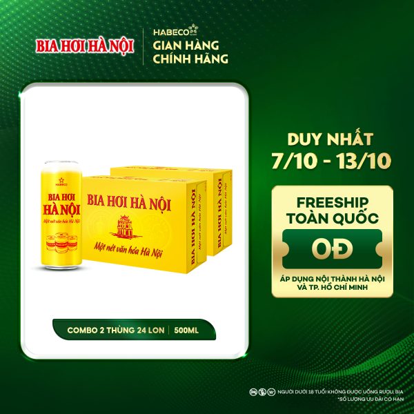 COMBO 2 THÙNG BIA HƠI HÀ NỘI – THÙNG 24 LON 500ML – Phiên bản Tết