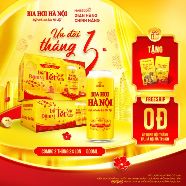 COMBO 2 THÙNG BIA HƠI HÀ NỘI – THÙNG 24 LON 500ML – PHIÊN BẢN TẾT 2026