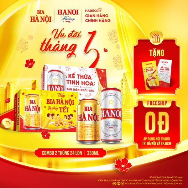 Bia Hanoi Premium – Nồng độ cồn 4,9% – Thùng 24 lon 330ml/lon phiên bản Tết 2026