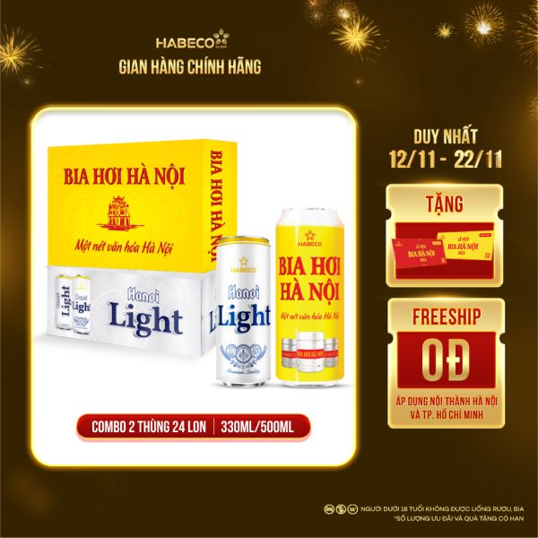 Thùng 24 lon Bia Hanoi Light – HABECO (330ml/lon) – GIAO HỎA TỐC HÀ NỘI
